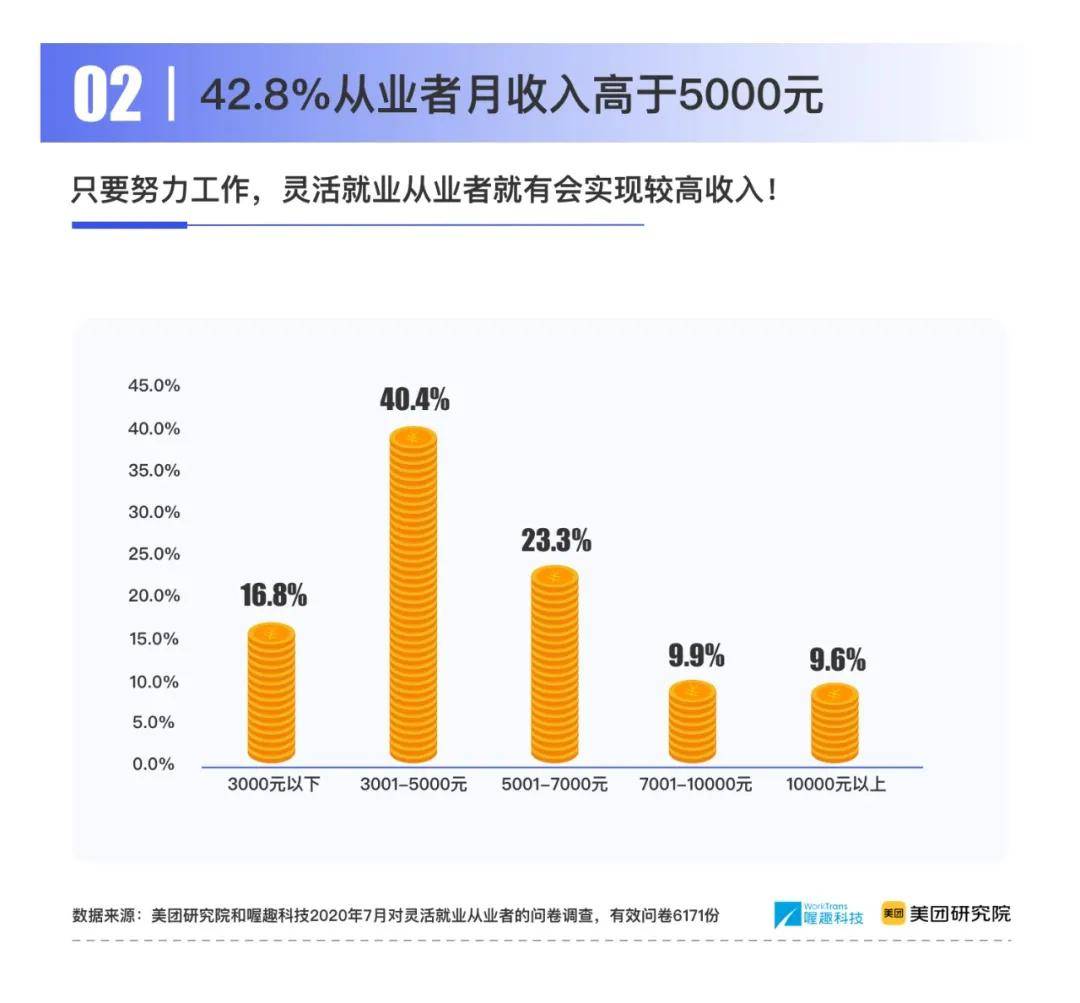 趋势二:42.8%灵活就业从业者月收入高于5000元
