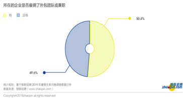 智联招聘2019年发布的雇佣关系趋势调查数据显示,50.4%的企业雇佣了外包团队,平台的灵活性得到了更充分的体现。