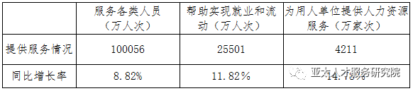2019年,全国各类人力资源服务机构共服务各类人员100056万人次,同比增长8.82%。在全国各类人力资源服务机构登记求职和要求提供流动服务的人员达51129万人次,同比增长2.43%。2019年,全国各类人力资源服务机构共帮助25501万人次实现就业和流动,同比增长11.82%。2019年,全国各类人力资源服务机构共为4211万家次用人单位提供了人力资源服务,同比增长14.78%。(见表1)