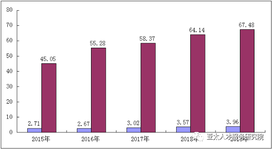 图1 人力资源服务机构(万家)与从业人员(万人)变化情况